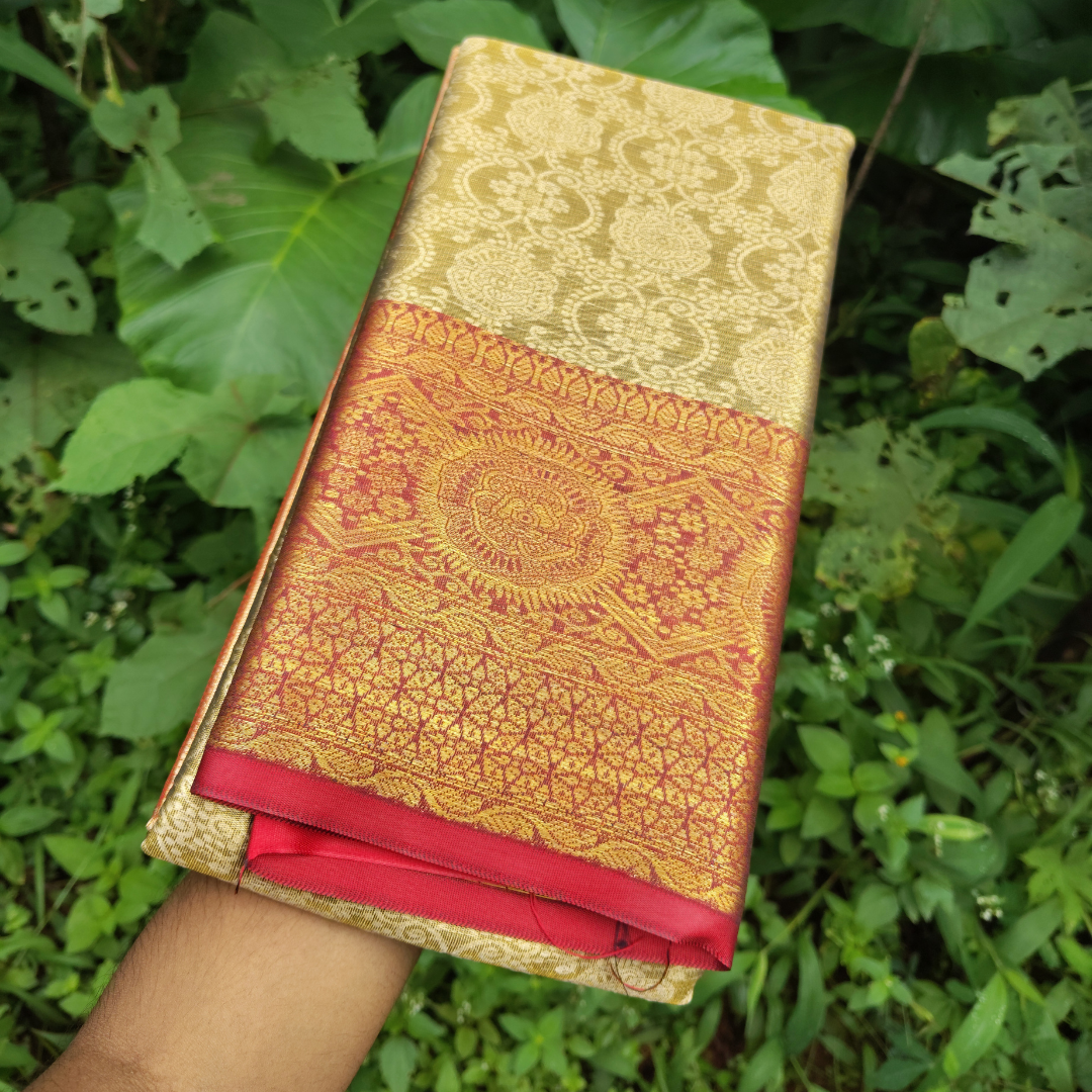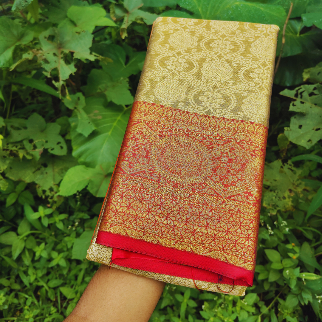 Vaidehi Vastra Golden Weave with Scarlet Red Border
